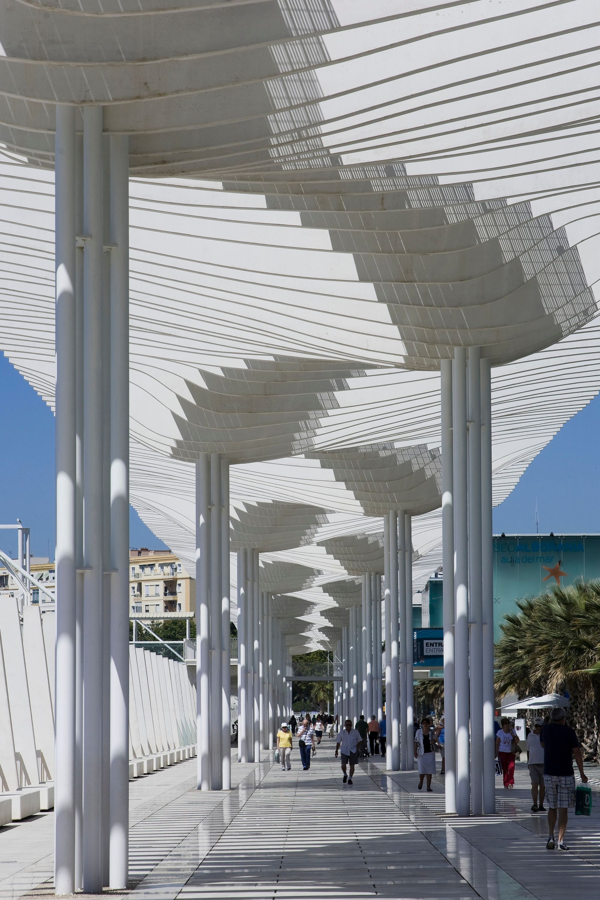 El Palmeral de las Sorpresas, situado en el Muelle 2 del Puerto de Málaga, constituye uno de los proyectos urbanos más significativos de la transformación del frente portuario en las últimas décadas. Inaugurado en 2011 como parte del Plan Especial del Puerto, este espacio representa la integración del puerto con la ciudad, generando un corredor peatonal y paisajístico que conecta directamente el centro histórico con el ámbito marítimo y el entorno cultural de Muelle Uno.